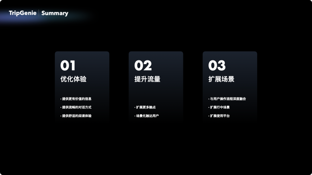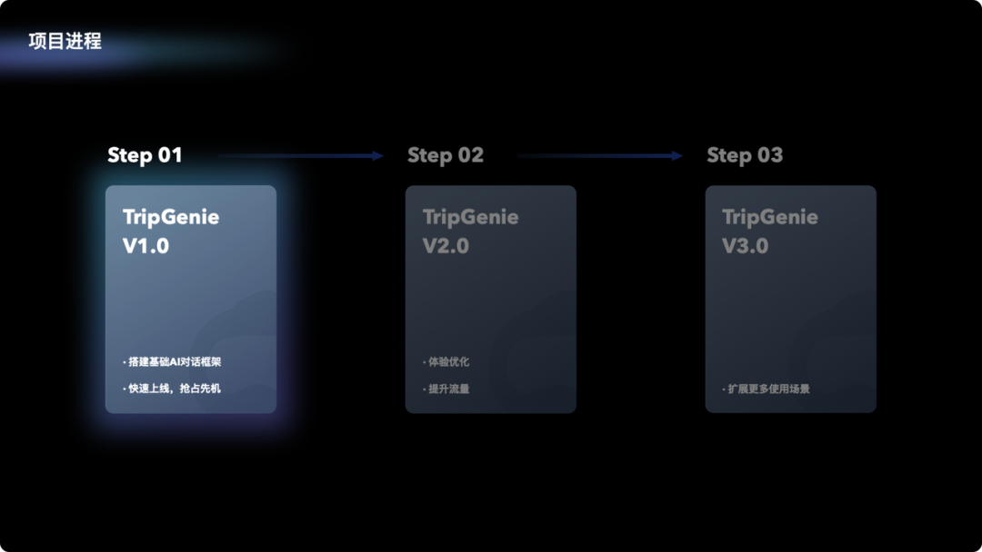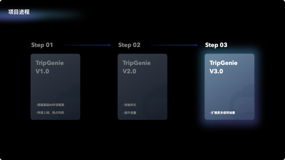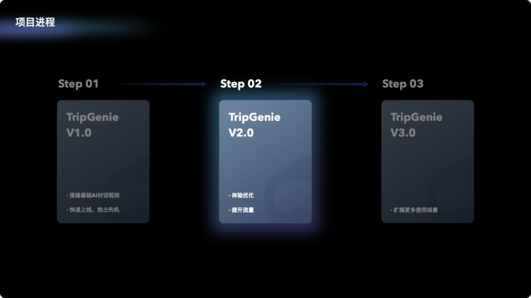 回顾 TripGenie 的发展,我们在搭建了基础的 AI 对话框架后,先后经历了体验优化、流量提升、场景扩展三个阶段。