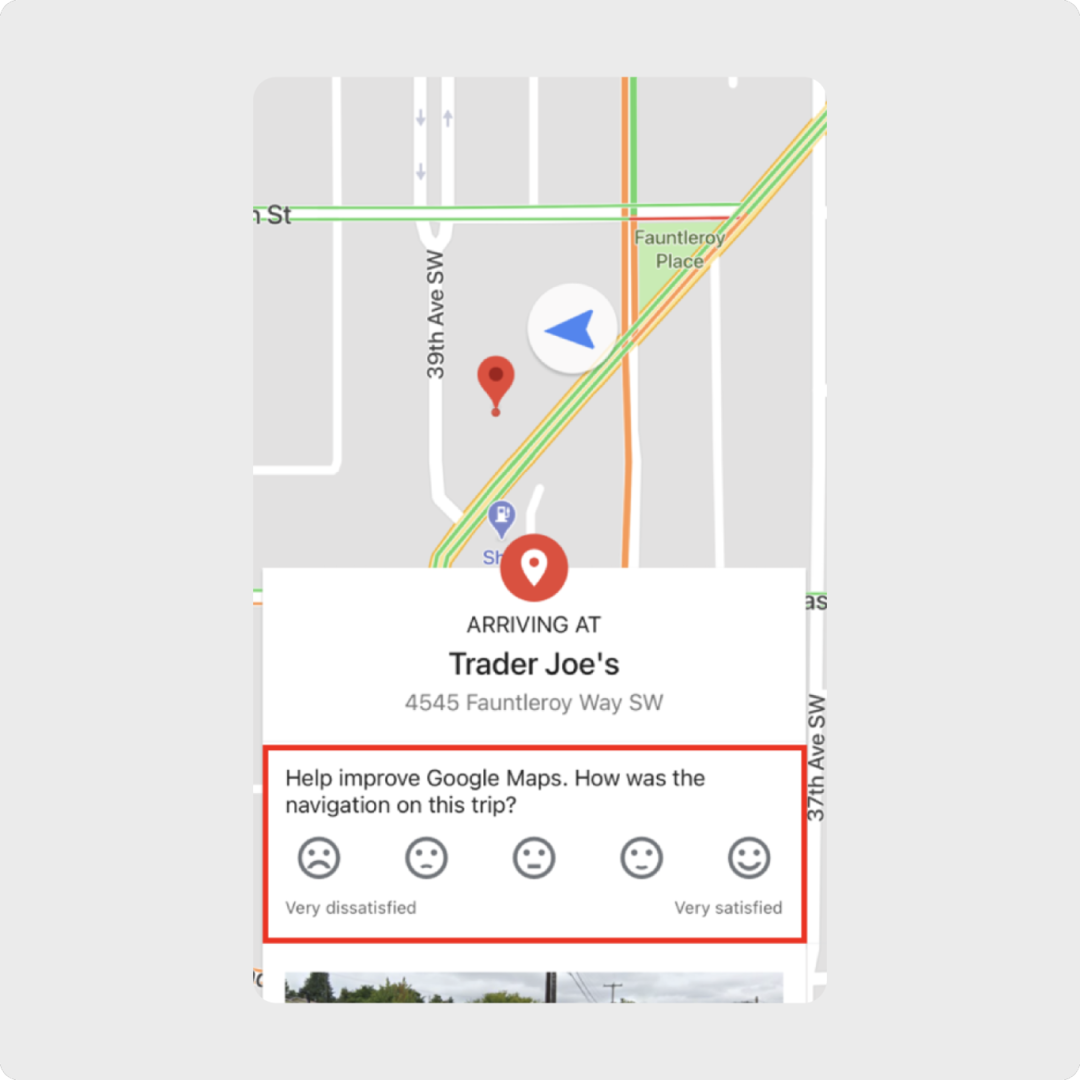 这需要AI鼓励用户提供细致的反馈,以便于及时调整偏好推荐,帮助优化体验。比如,Google 地图在导航结束后邀请用户对路线体验打分,这些反馈也会影响后续的路线规划与推荐。