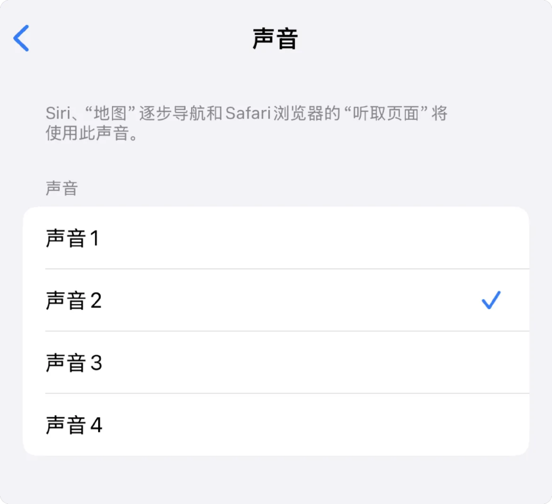 Siri 提供了多种音色,且不以男女作为音色的区分