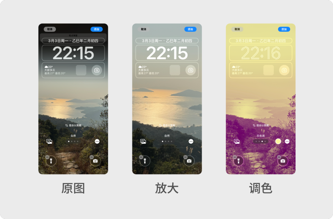 这样“所见即所得”的设计方法很早就被应用。比如 iOS 在锁屏的设置流程中给予了预设值,减少了用户的学习成本,还通过实时预览展示最终效果,避免用户误操作。