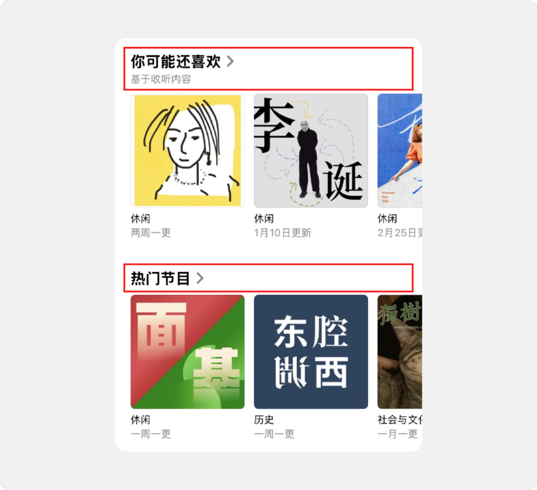 播客 App 的主页在推荐小标题上的差异