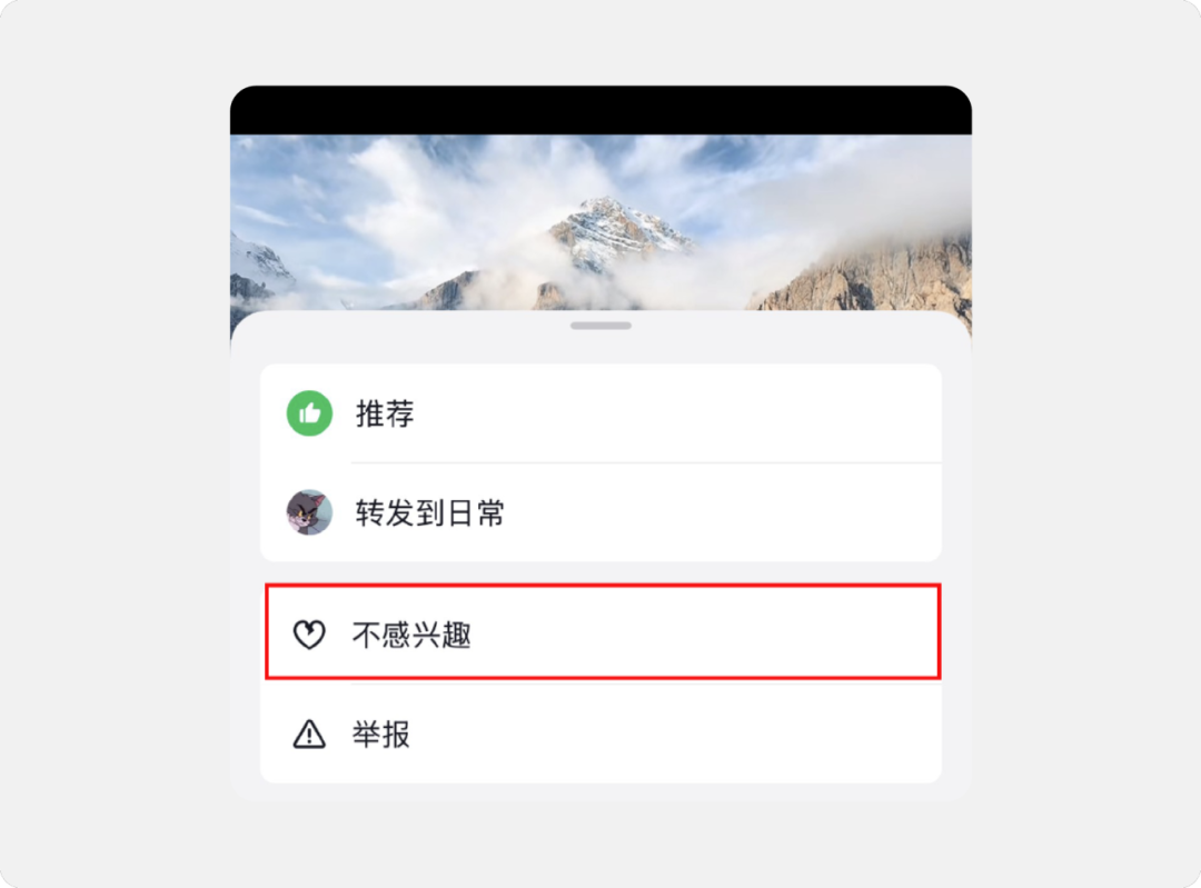 在我们生活中最常见的,就是刷短视频的场景,若用户被推送到不喜欢的内容,可以选择“不感兴趣”或“减少此类推荐”以降低相似视频的推送频率。
