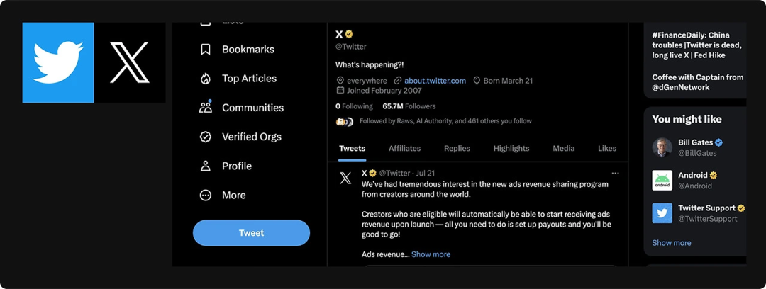 比如推特改名“X”后,虽然图标从蓝鸟变成了X,主色调也成了黑白色,但发布按钮还是沿用了原来的蓝色,核心的界面布局也没大改。老用户打开APP不会觉得完全陌生,能更快接受X这个新品牌。