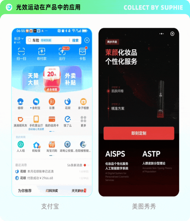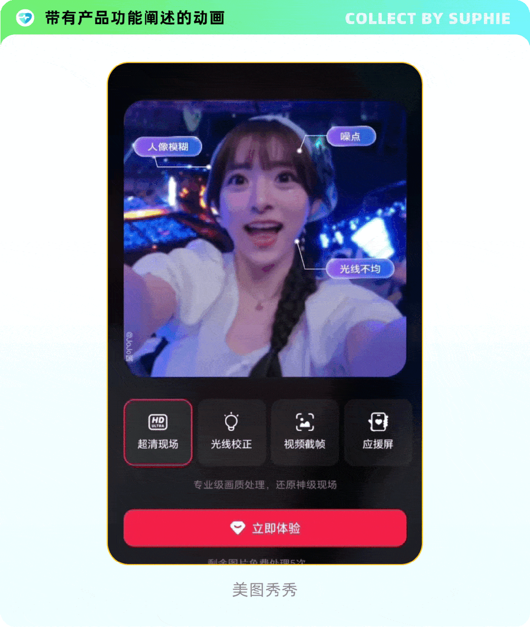 优点2:光效运动在美图秀秀中增加了产品的质感,打破了页面的沉闷。