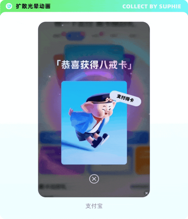 优点:扩散光晕色彩跟蓝色弹窗接近,扩散光效更像是对弹框画面的补充,让弹窗画面更丰富,空间感更强。