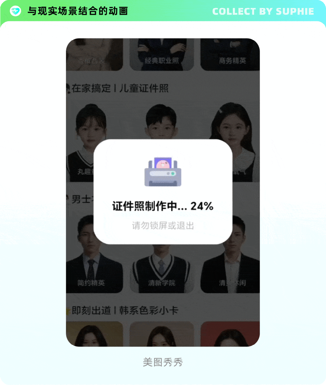 优点:美图秀秀一寸照的制作,在等待的过程中将生活中打印机打印照片的场景搬到了线上,这种亲切感和真实感剧增。