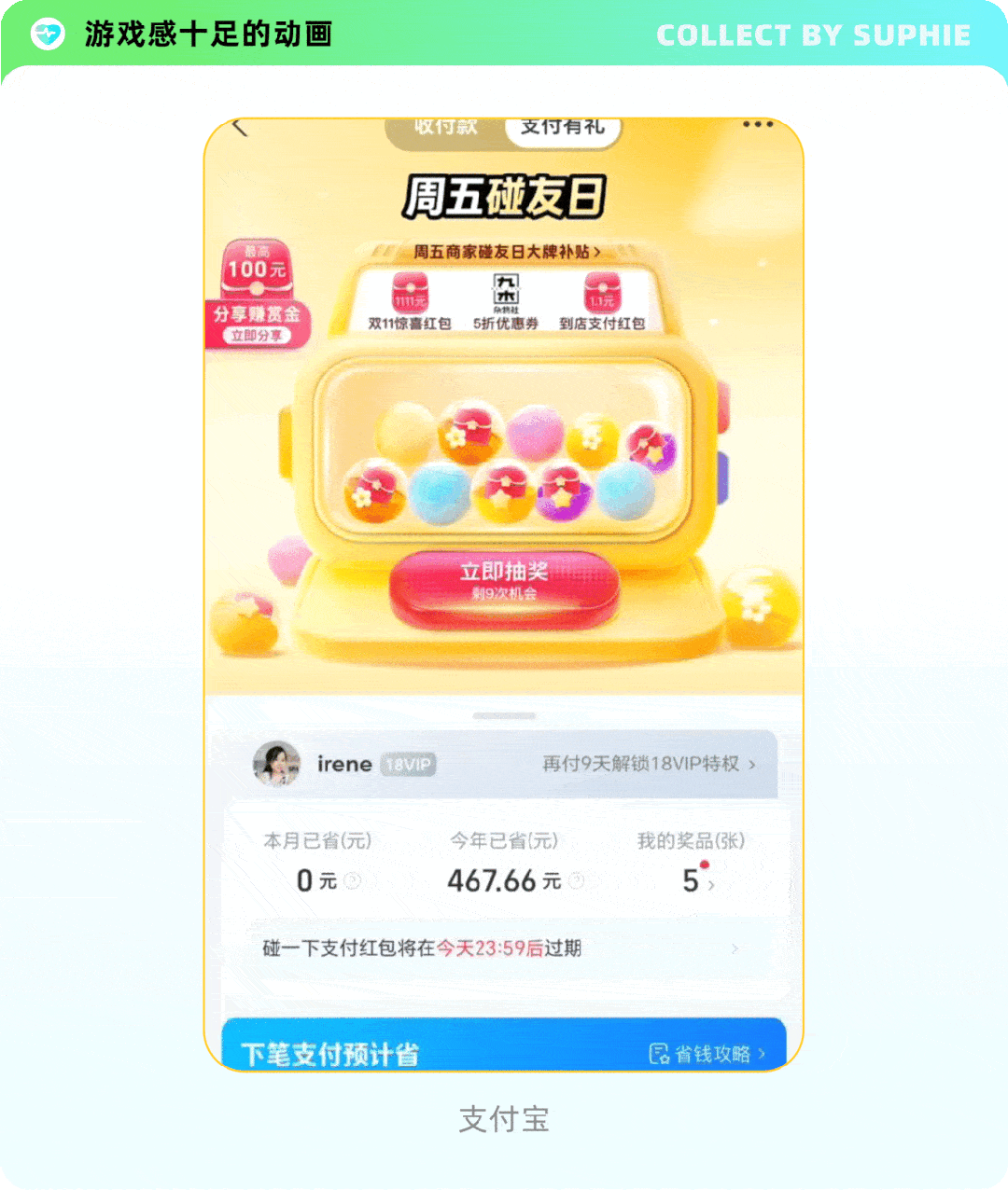 优点1:光效运动在支付宝中强调补贴的优惠,有驱使用户下单的作用。
