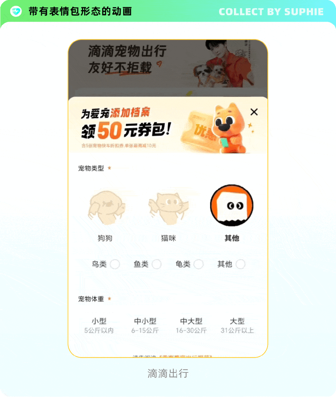 优点:界面中将动物设计成了一个图标入口,并且还融入了动态表情的设计,这种鲜活感和创意运用的恰当好处。