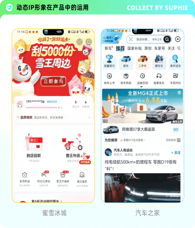 优点1:蜜雪冰城的动态IP形象位于饮品劵处,具有强烈引导用户下单购买的作用。