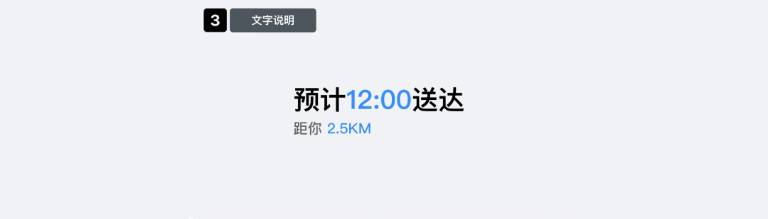 文字说明:主要用于显示打车、送外卖、寄快递等场景的预估时间展示。