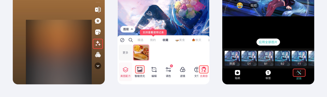后来在图片编辑领域,菱形十字星元素用得越来越频繁。只要是能“少动手”的功能,比如自动调色调、快速选区域、滤镜,在设计图标时都喜欢加入菱形十字星元素。