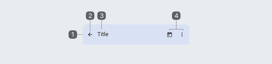 ①为容器、②为导航型图标、③为标题文本、④为功能型图标。