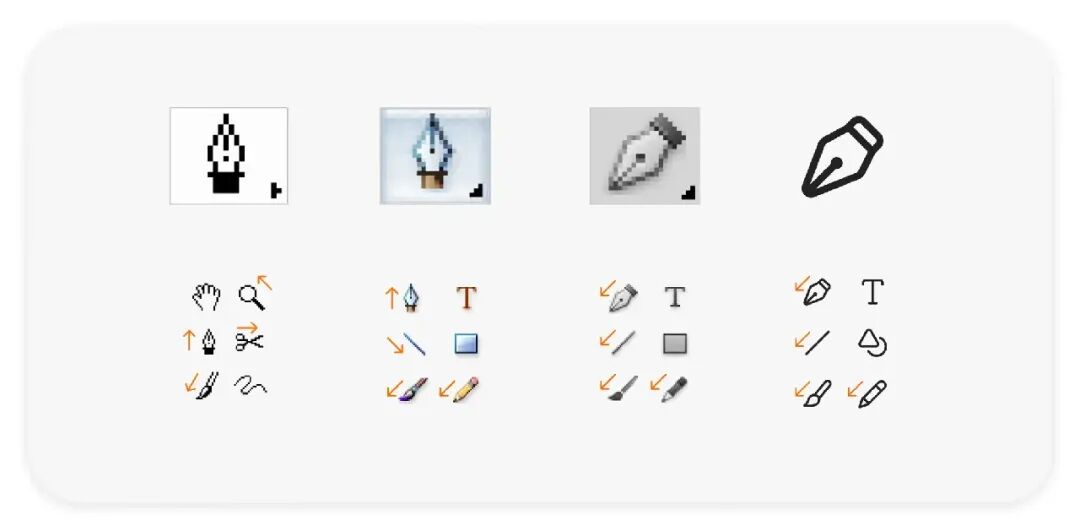 这么多年,“钢笔”代表“矢量绘图”的核心意思没改,但图标的朝向调整过。