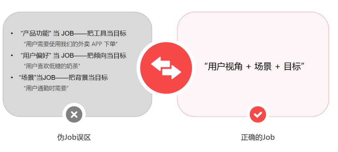 Job的核心价值是 “帮助企业找到长期不变的用户需求”,因此Job必须是用户在某类场景下的 “长期目标”,而非临时的行为或偏好。