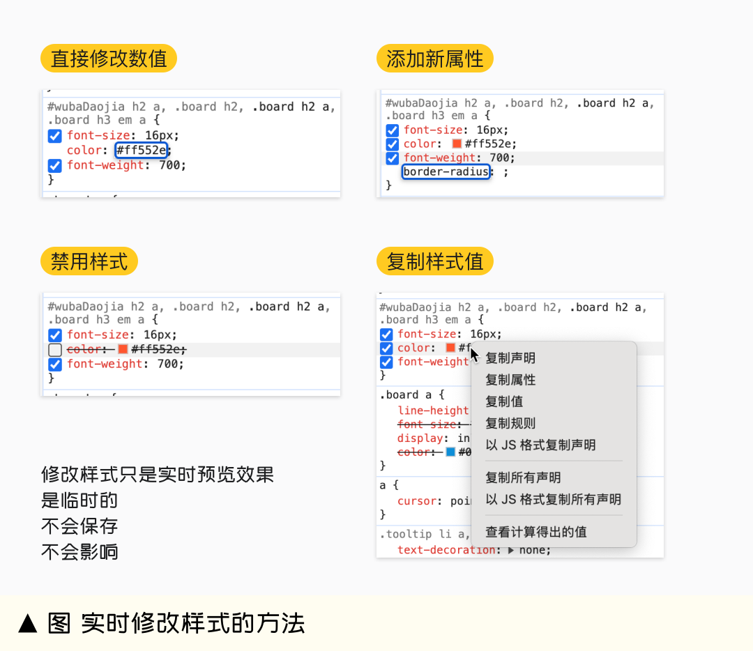 注意:所有修改都是临时的,刷新页面后会恢复原样。DevTools 不会改动源代码,只是让你在本地预览效果。