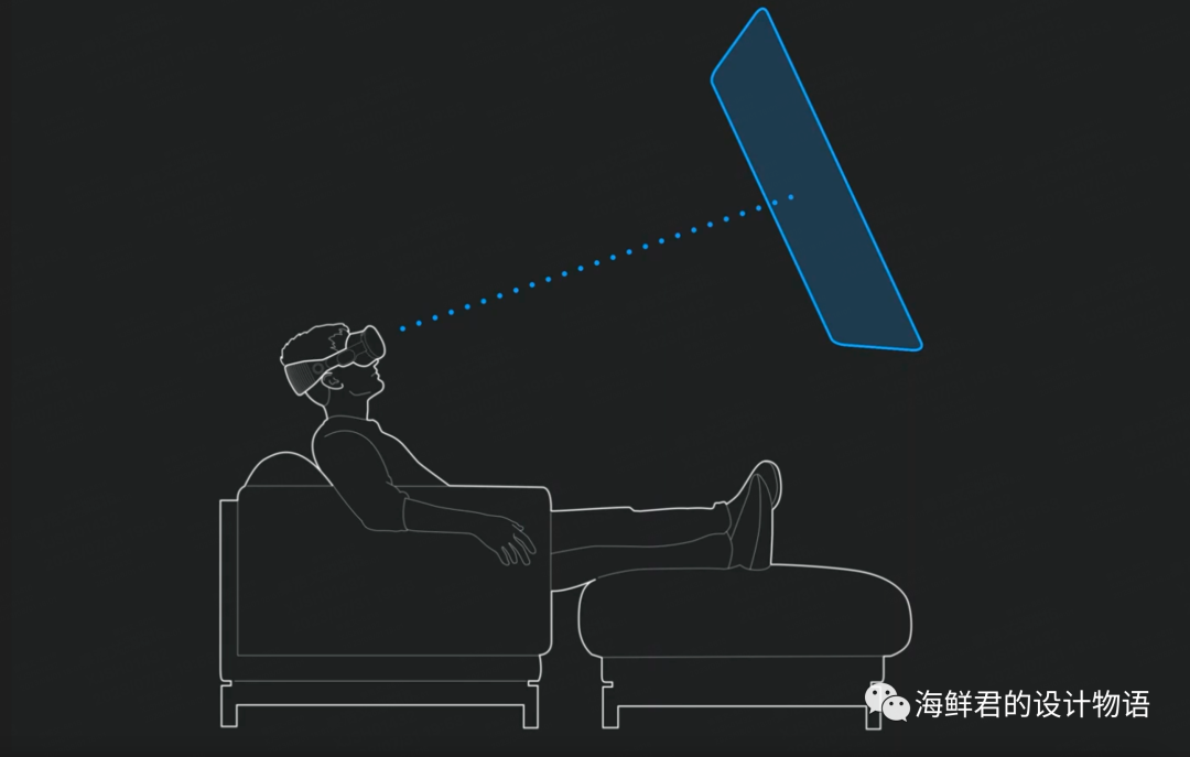 画布是无限的,但是人的空间是有限的,所以要保证你的窗口不能与真实世界有穿插,窗口应该服务于用户的视觉感知。不同的类型内容,系统本身也可以通过调节眼镜的光线来营造用户的沉浸感。也就是说虽然 有的场景可能无法避免穿插的情况,但是也可以通过眼镜本身的光线进行弱化这一不舒适的体验。