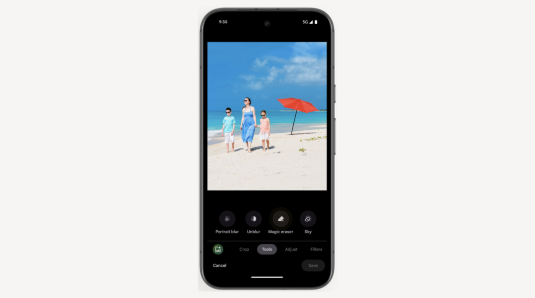 Google 相册中的 Magic Eraser 功能,允许用户轻触、涂抹或圈选对象以移动,这是一种增强,让用户保持对照片编辑的控制,而不是完全自动化。