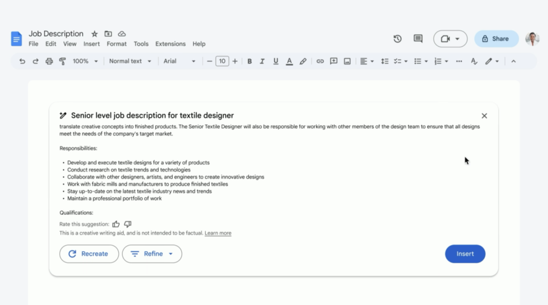 下文将以 Google Workspace 推出的 Help me write 功能为例,演示如何创建交互设计策略。