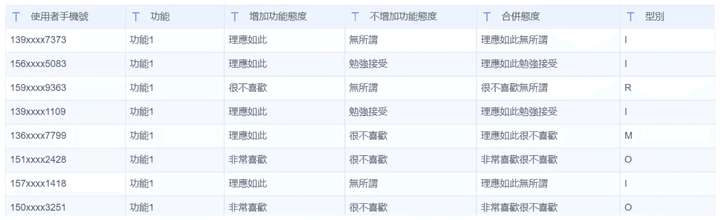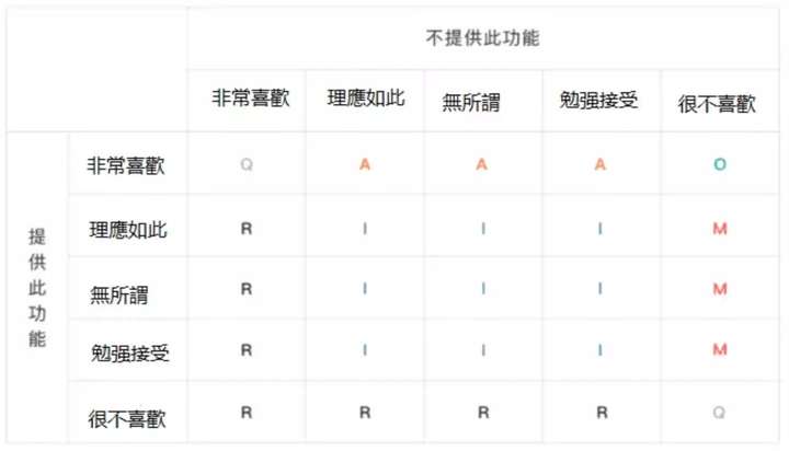 本篇文章为了让大家容易了解KANO模型的操作,故仅以单一功能的需求评估举例。实际需求分析时会有更多的样本数量、更多不同功能一起进行分析,此时可借助相关统计软件进行分析,以便提高效率。