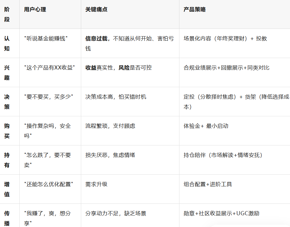 • 首购决策:从”选基金”变成”选场景”(如:年终奖理财→只推荐3只产品)
