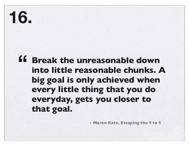 16.把不切实际的任务分割成合理的小任务只要每天都完成小任务,你就会越来越接近那个大目标了。