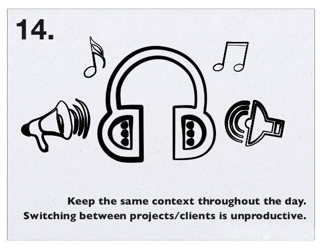 14.一整天保持相同的工作环境。在项目/客户之间切换,效率会低