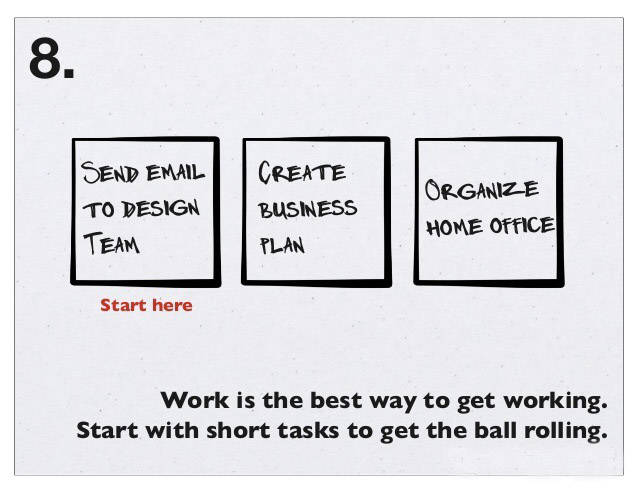 8.进入工作状态的最佳方式就是工作,从小任务开始做起,让工作运转起来