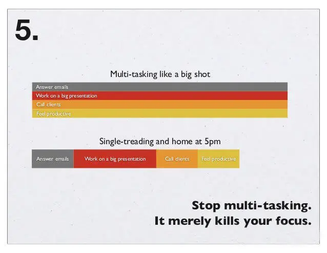 5.不要多任务,这只会消耗注意力;保持专注,一心一用