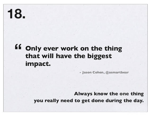 “Only ever work on the thing that will have the biggest impact” 只去做那件有着最大影响的事情。—— Jason Cohen