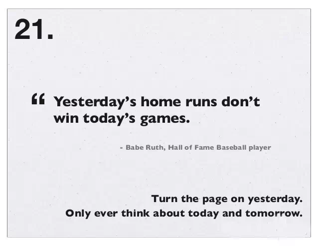 21.把昨天翻过去,只考虑今天和明天昨天的全垒打赢不了今天的比赛。 — 好汉不提当年勇。