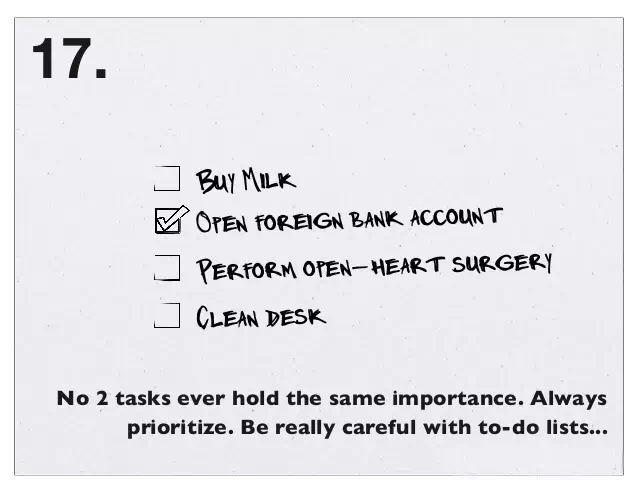 17.从来没有两个任务会有相同的优先级,总会有个更重要,仔细考虑代办事情列表