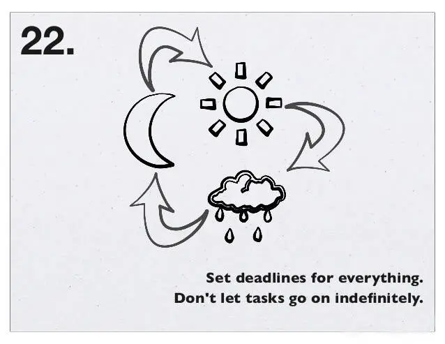22.给所有事情都设定一个期限。不要让工作无期限地进行下去