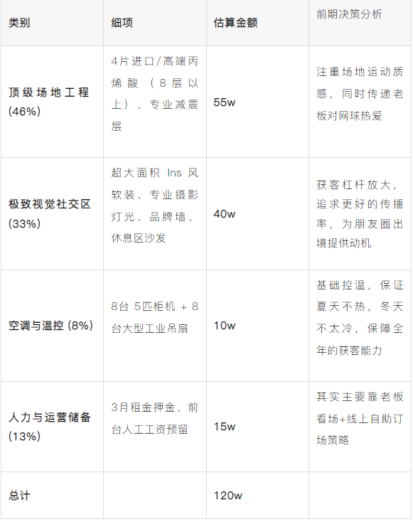 结局描述:创始人在经历了18个月的“为房东打工”后,面对开始老旧的球场地面和审美疲劳的Ins风装修,陷入了“不翻新没客源,翻新没现金流”的死循环。最终以5-10w的残值转让给下一个怀揣梦想的“韭菜”。