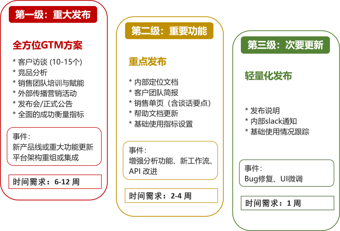 从一个可扩展的重要性分级 GTM 清单开始。并不是每一个功能都值得一次完整的发布活动。